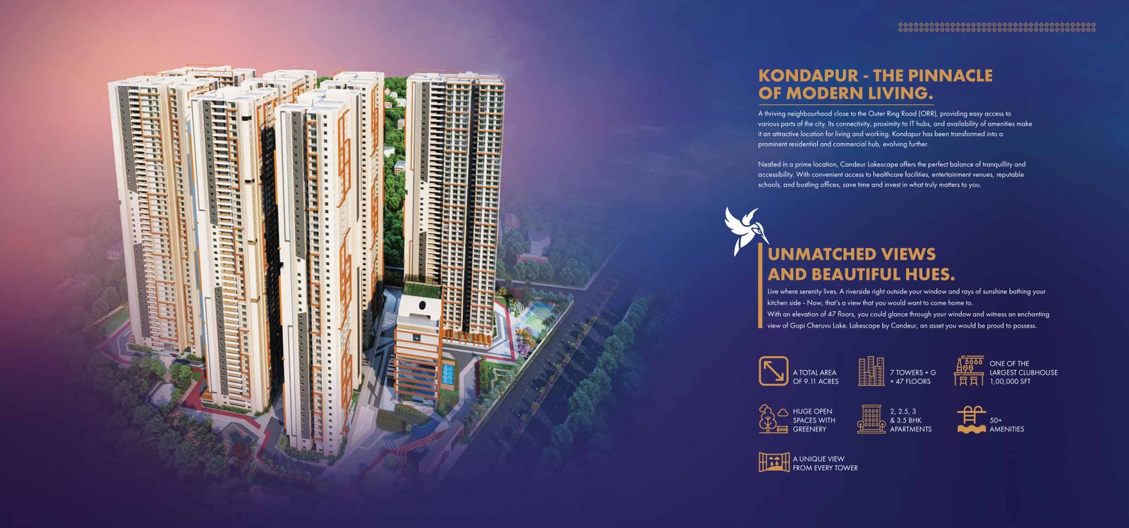 Experience premium lakeside living at Candeur Lakescape, Kondapur. Luxury 2, 2.5, 3 & 3.5 BHK apartments