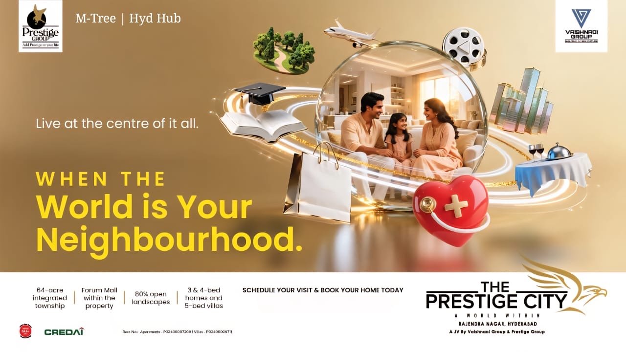 The Prestige City is a thoughtfully designed 64-acre integrated township located in Rajendra Nagar, Hyderabad, developed jointly by Prestige Group and Vasanthaa Group. This iconic residential destination redefines urban living by bringing together homes, retail, leisure, and nature within one vibrant ecosystem.