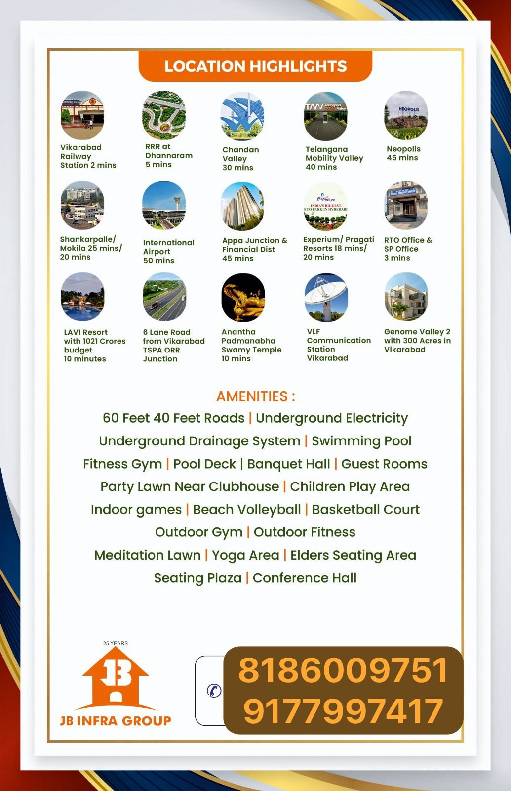 JB's Pristine City Phase-3 is a premium 50 Acres Mega Layout designed for modern living and smart investment. Located in the fast-developing region of Vikarabad, this project offers excellent connectivity, world-class amenities, and a peaceful environment away from the city's chaos.
