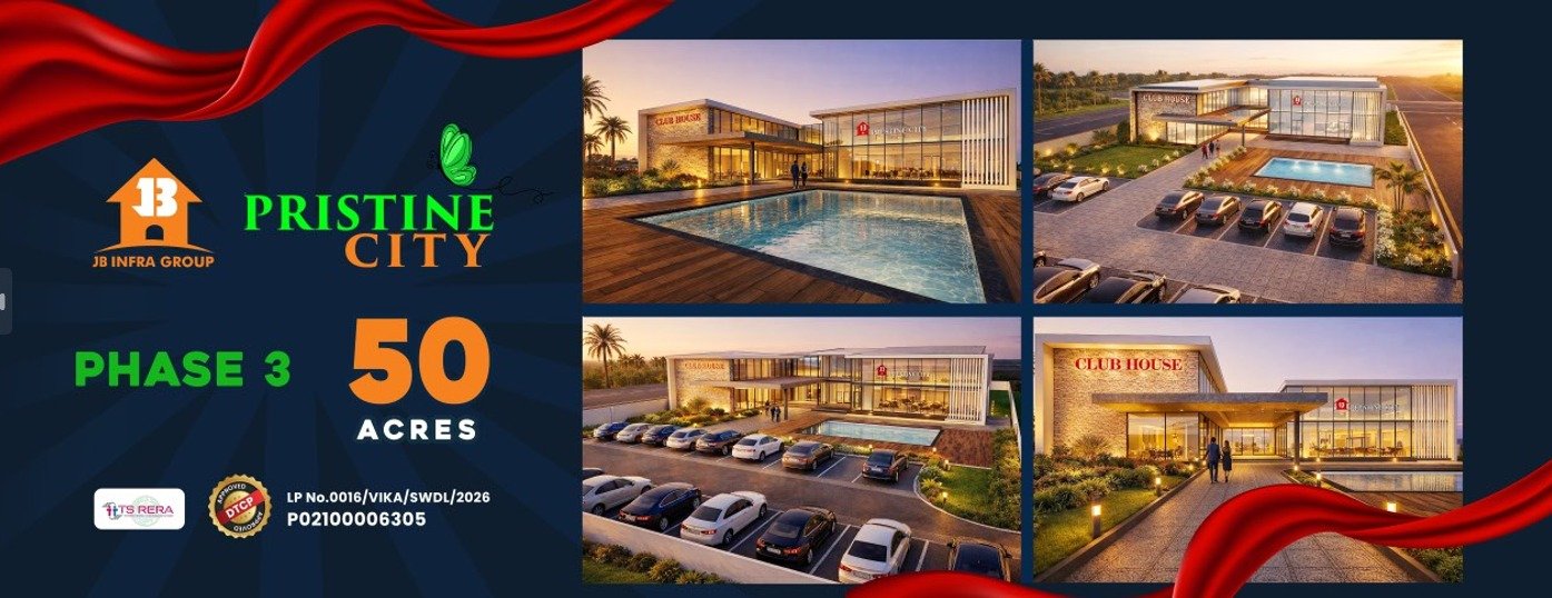 JB's Pristine City Phase 3 is a DTCP approved 50 acres mega layout located in Vikarabad near Hyderabad. Premium residential plots with modern amenities